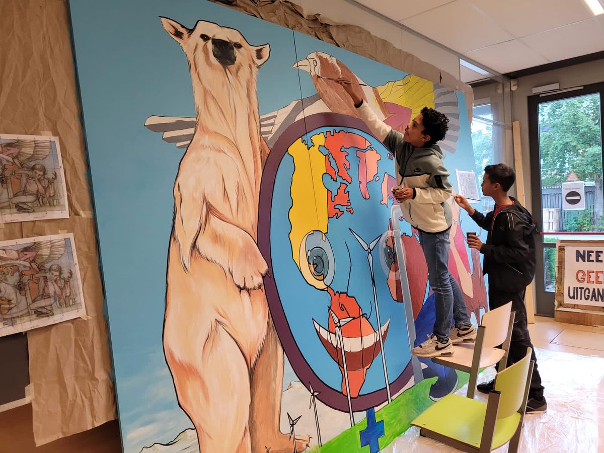 Finalizado e inaugurado el mural elaborado por 66 adolescentes de entre 12 y 16 años de edad y dirigido por el educador Artístico de FUNARTE Manuel Alaniz como parte de la consultoría en la escuela secundaria en Zoetermeer de Holanda.
