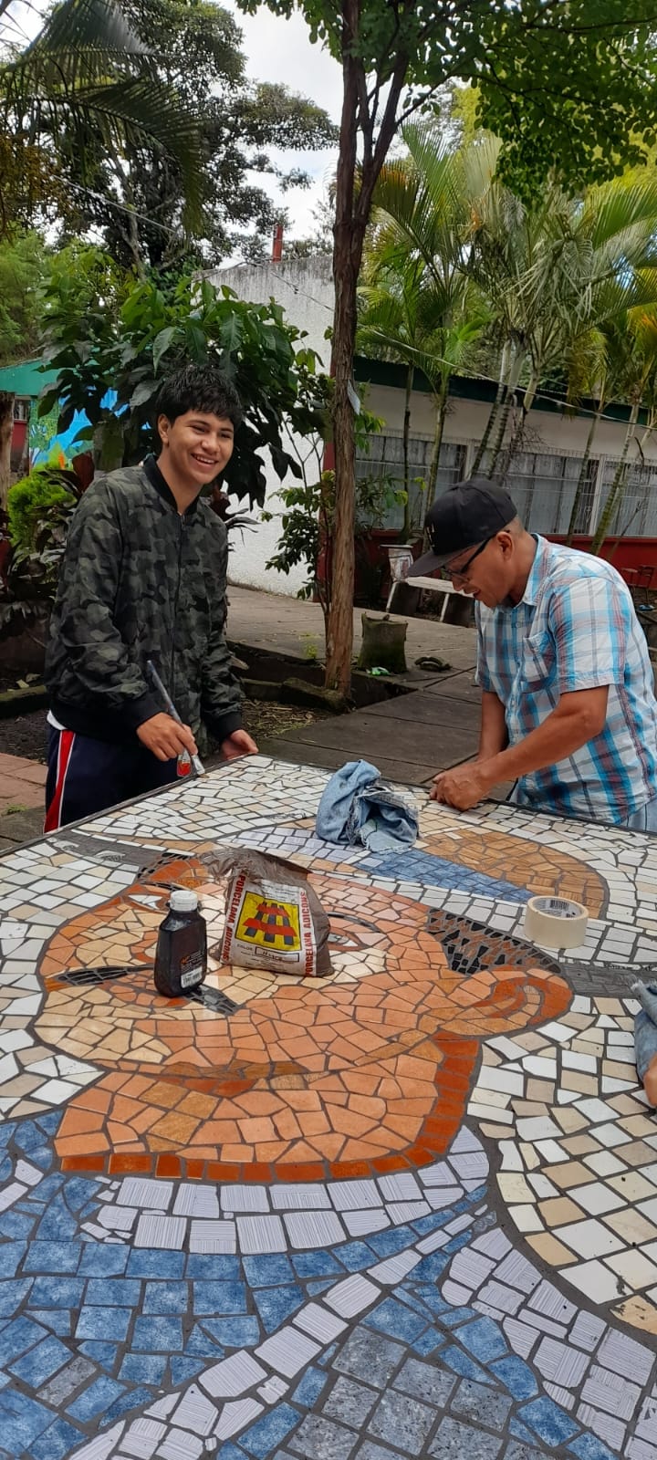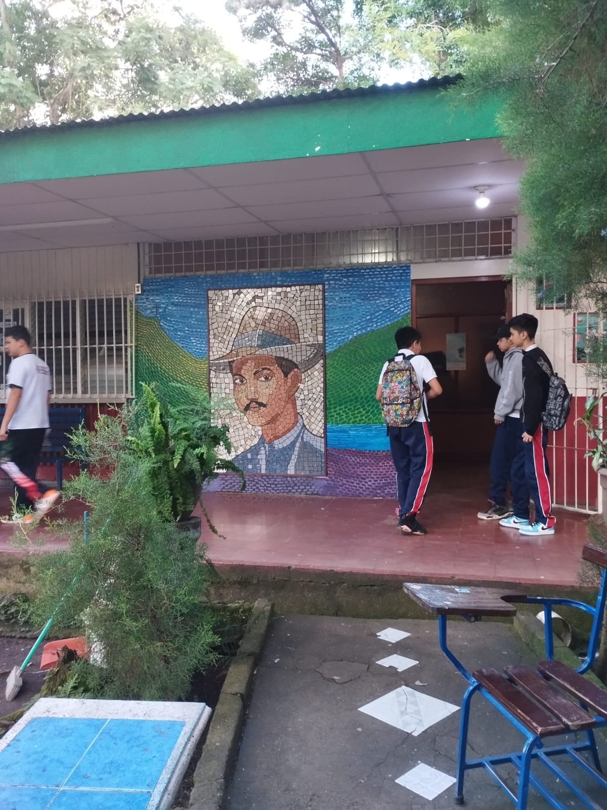 Adolescentes y jóvenes realizaron un mosaico de Benjamín Zeledón, quien fue elegido como un personaje emblemático que contribuyó a su municipio, este mosaico se realizó en el Instituto Nacional que tiene su mismo nombre.